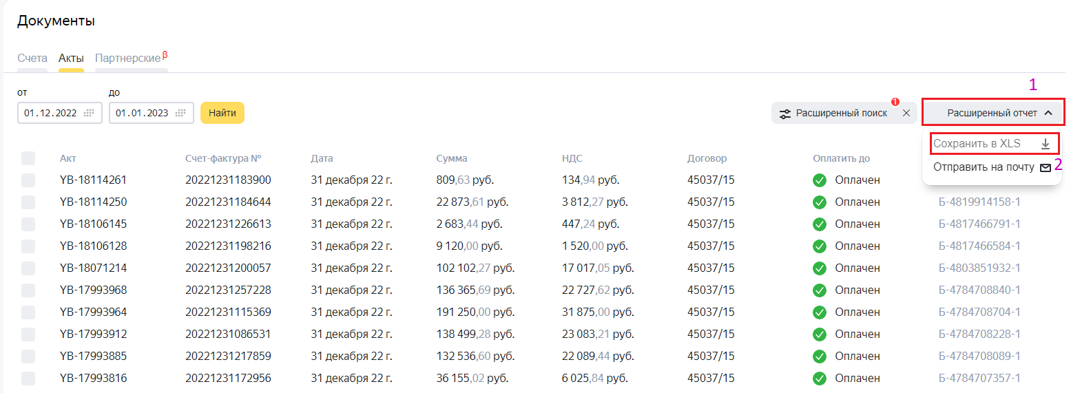 - Выбрать того же плательщика, что и в фиьлтрах Яндекса - см. рис.1 п.5.